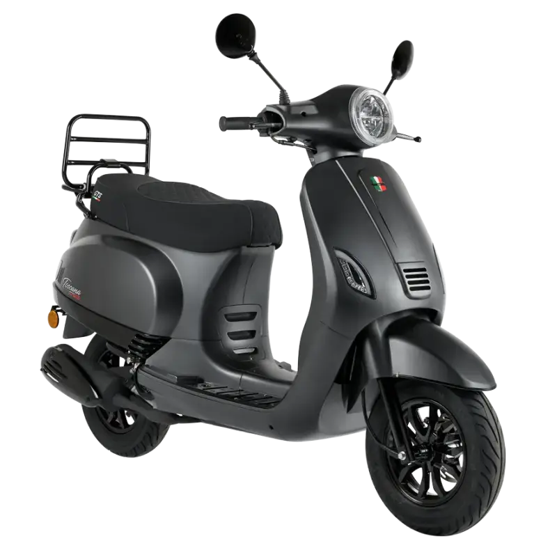 Voor de Toscana Dynamic heeft u de keuze uit meer dan 10 verschillende kleuren! Deze scooter is daarom zeer goed naar eigen wens in te vullen. Wilt u bijvoorbeeld opvallen met deze scooter? Kies dan voor de Capri Yellow of de Bolsema Orange. Toch liever een luxere kleur? Dan kan dat ook met de Corris Grey of de Mat Carbon Black. De scooter is standaard voorzien van een afsluitbaar handschoenenkastje, opklapbare bagagedrager, LED-achterlicht, LED-dagrijverlichting en inklapbare duo-steps voor de passagier. Diverse details en sierlijsten zijn in zwart of chroom uitgevoerd. De treeplank van de Toscana Dynamic is in de kleur van de scooter mee gespoten.